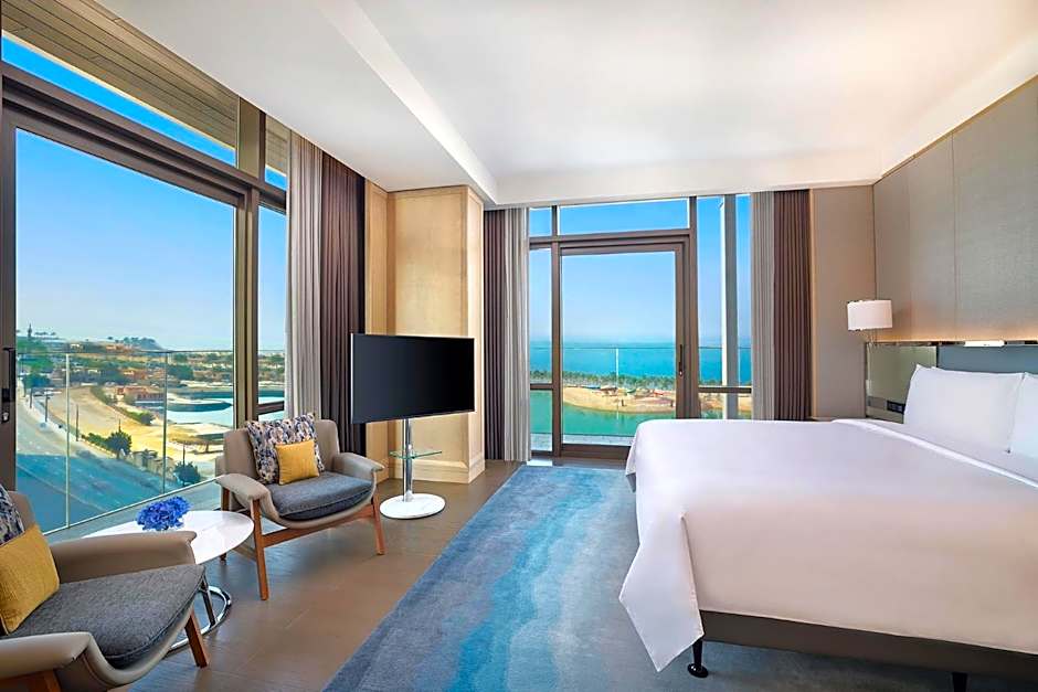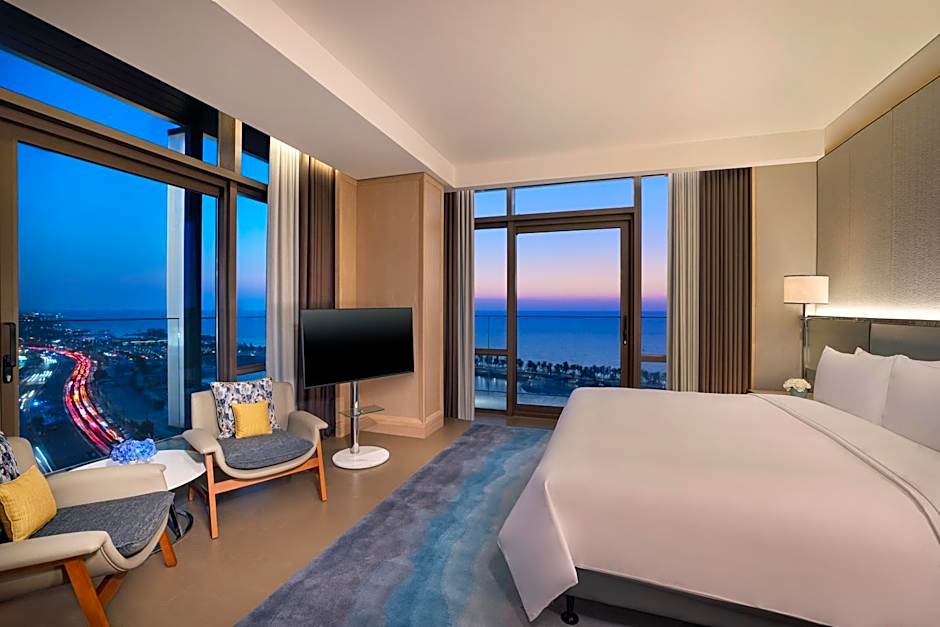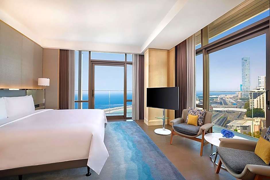 This suite's standout feature is the spa bath. This spacious suite is consisted of of 1 living room, 1 separate bedroom and 1 bathroom with a walk-in shower and free toiletries. The air-conditioned suite offers a flat-screen TV with cable channels, a mini-bar, a tea and coffee maker, a seating area as well as sea views. The unit offers 1 bed.